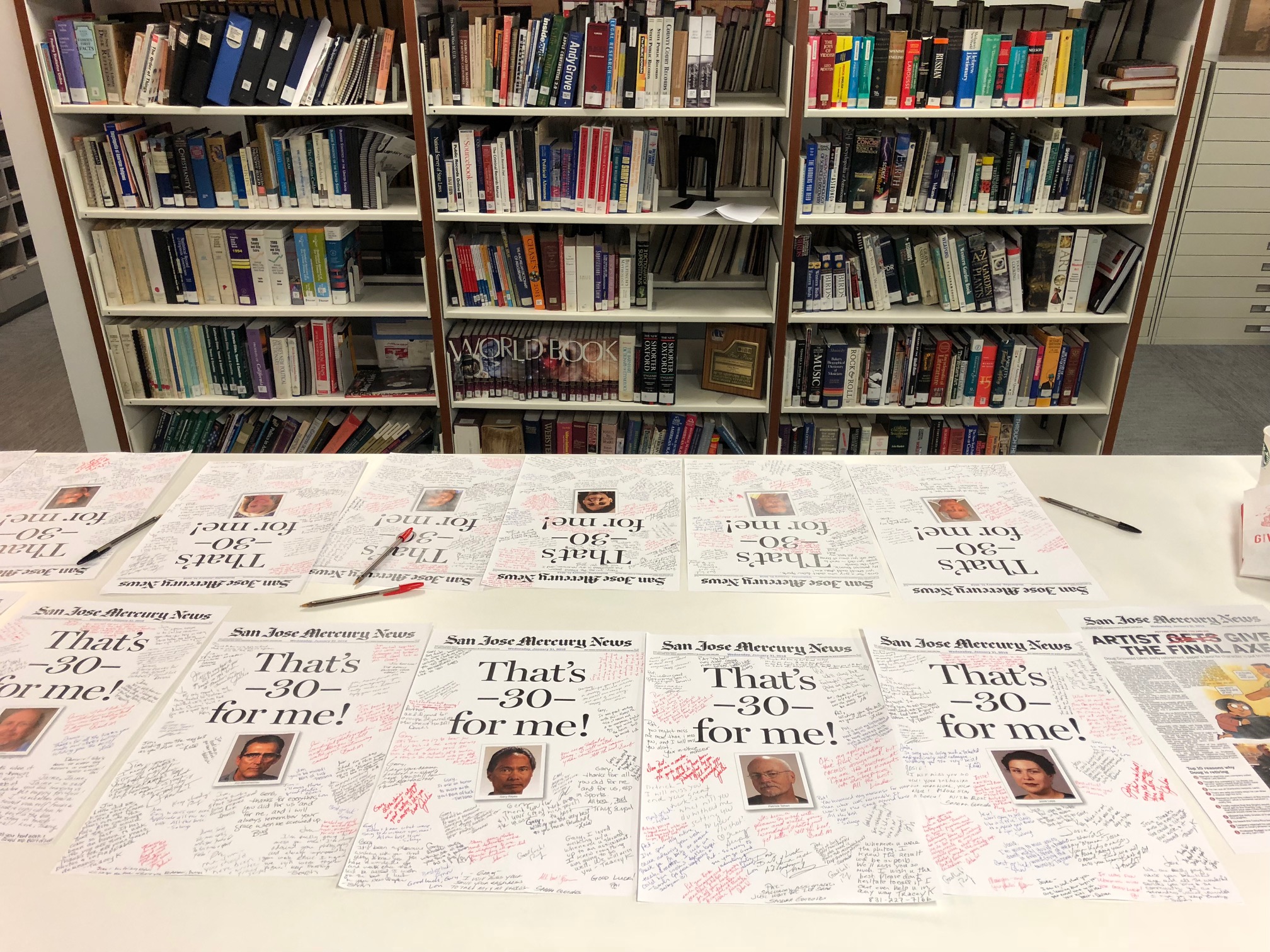 San Jose Mercury news employees sign farewell cards for colleagues after buyouts. | Josie Lepe